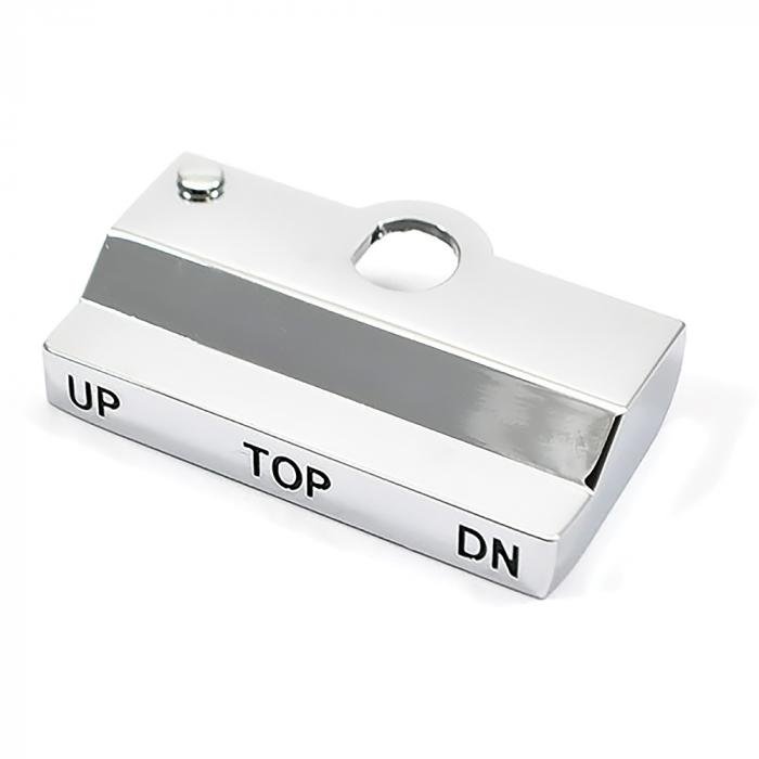 Reproduction power convertible top switch bezel for 1966-67 Pontiac GTO, LeMans and Tempest. This bezel is chrome plated and is top quality reproduction.