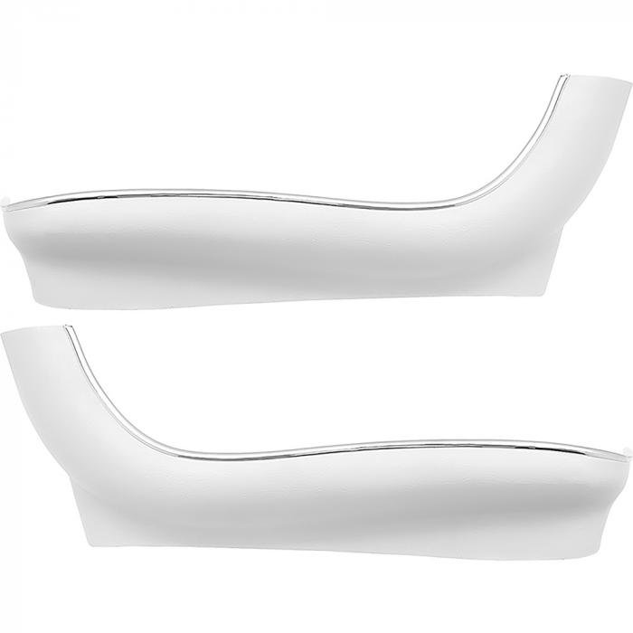 Reproduction seat side panels for 1969-71 Chevy II/Nova and other GM A, B, X-Body models with Strato back bucket seats. These ABS reproductions will replace the lower side portion of your front bucket seats. Each panel can be used in conjunction with our seat back panels sold separately. Each side panel shield features mylar chrome trim as correct for various 1969-71 models. Covers have pre-drilled mounting holes and are sold as a pair. One pair required per seat.