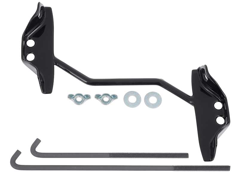 Repproduction of the original battery mounting hold down set designed for use on various 1966-69 Dodge and Plymouth models. Replace your damaged or missing battery tray hold down components with this quality reproduction. Each hardware set will include all the necessary components to secure the battery to the battery tray. Will hold a battery up to apx. 6-3/4" wide.