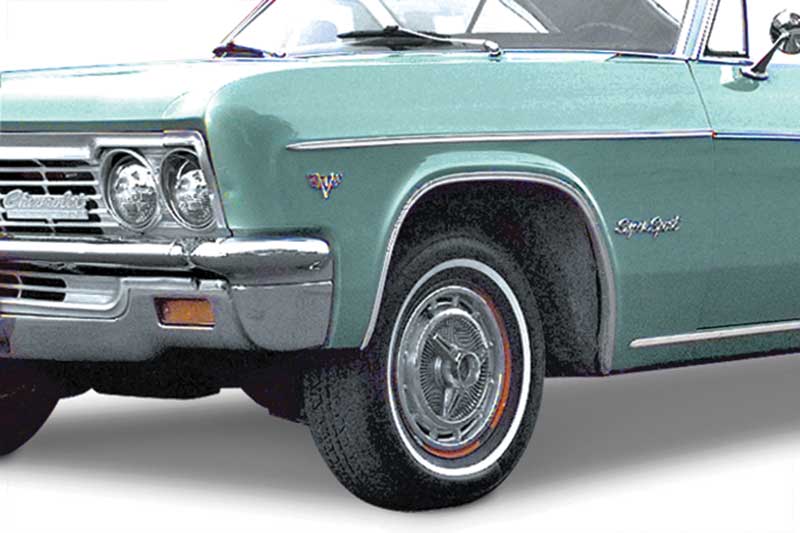 Reproduction of the original wheel opening moldings designed for use on 1966 Impala Bel Air, and Caprice models. Each molding is stamped to original factory specifications with correct contours and finish for an original appearance and fit. Each set includes 2 front fender moldings and 2 rear quarter moldings specifically designed for the 1966 models. A complete set of mounting screws are included with each set. Note: Not for use on station wagon models.