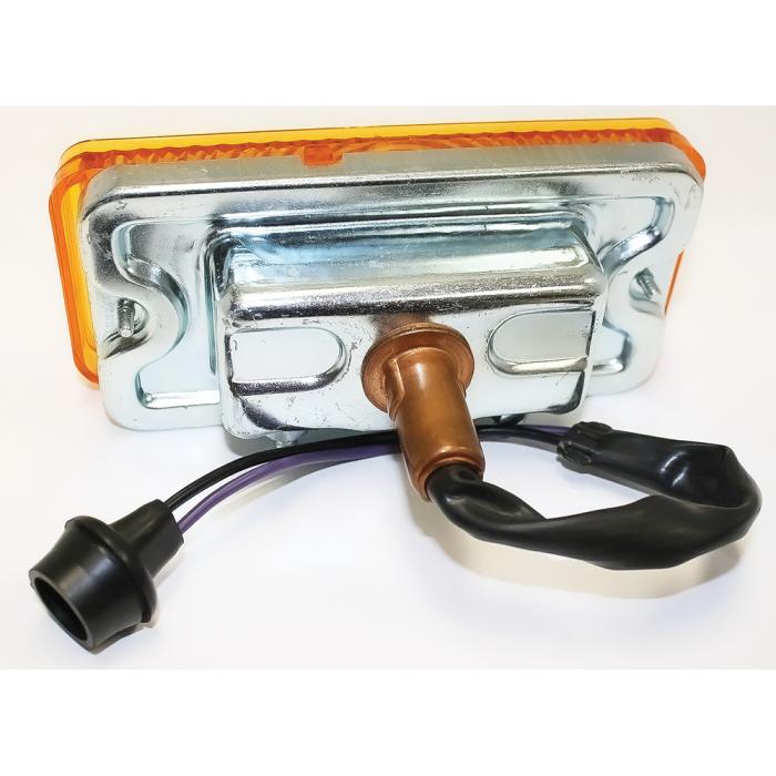 Reproduction park lamp assembly for 1967-68 Chevrolet trucks. This reproduction park lamp assembly is manufactured to factory specifications and features housing and amber lens. Measurements: 6-1/2" x 2-5/8". Sold individually. LH driver side