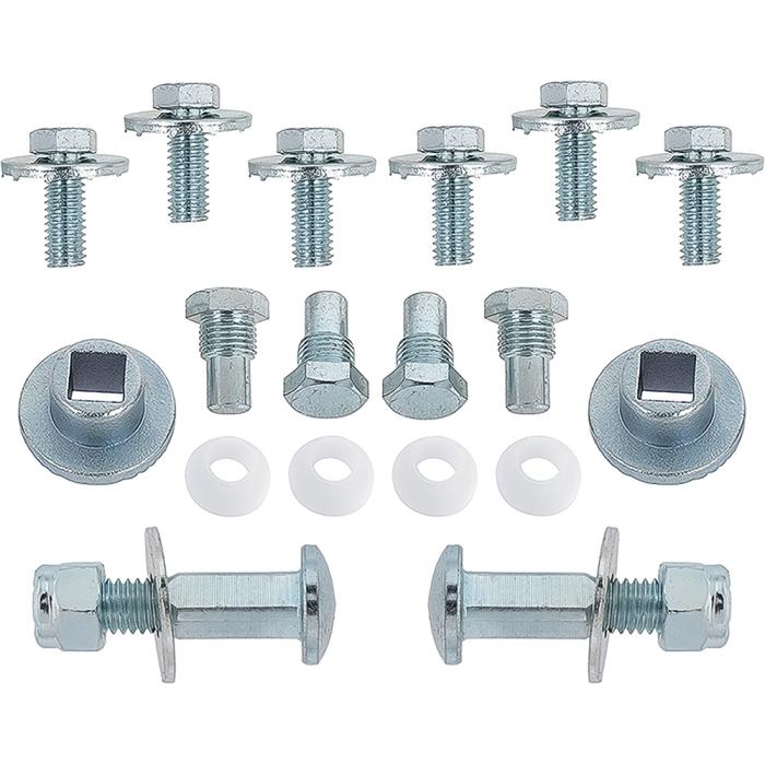 Reproduction of the rear control link bolt and bushing set designed for use with 1967-69 Chevrolet Camaro, Pontiac Firebird, and 1968-72 Chevrolet Chevelle convertible models. This complete set includes all required rear control link bolts and bushings to properly mount the rear control link of the frame to the trim sticks. Also included are the bolts used to attach the convertible top cylinders to the frame, ensuring a correct and secure installation. Manufactured to factory specifications for a precise fit and long-lasting durability.