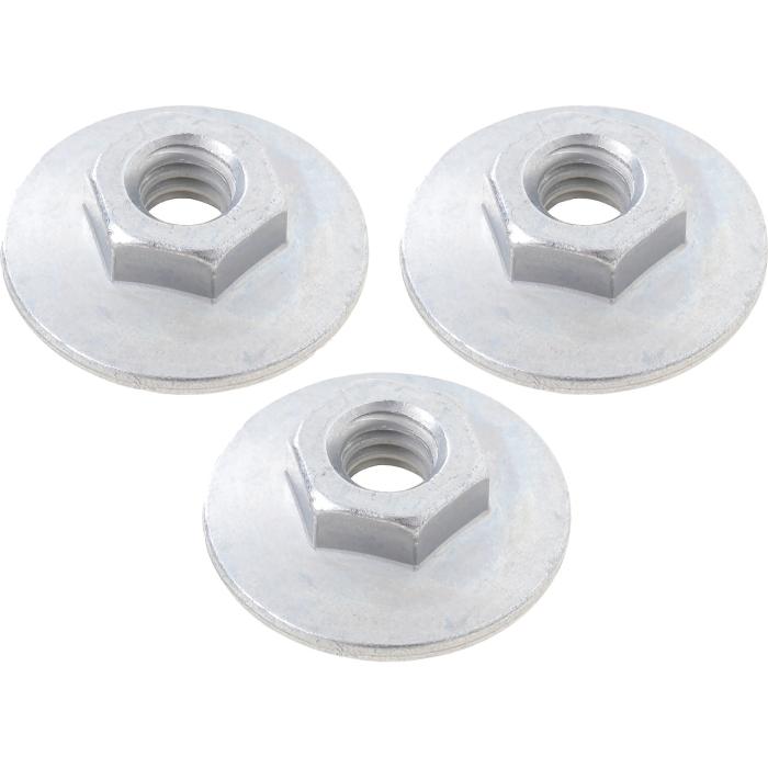 Reproduction quarter window track mounting nuts for 1967-69 Camaro and Firebird models. Manufactured to factory specifications, featuring the correct oversized flange. Each side requires 3 nuts. 2 sets required per vehicle.