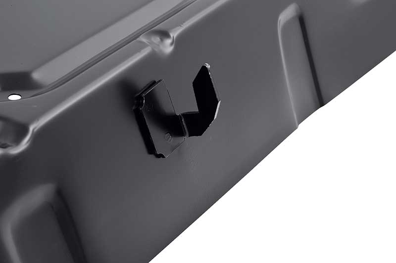 Reproduction of the rear seat back hook for 1967-69 Camaro and Firebird models. Hooks are manufactured in stamped steel to the factory configuration replicating the original seat back hook. This hook is used to secure the rear seat back to the upper rear speaker shelf panel. Sold individually. 3 required per vehicle.