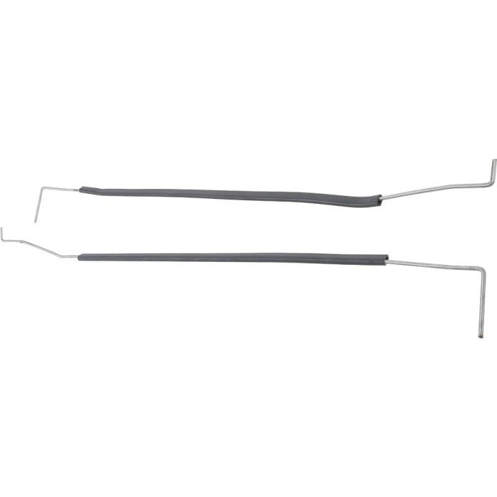 Correct reproduction of the original trunk lid torque tension rods designed for use with 1967-69 Camaro and Firebird models with a rear spoiler. Manufactured to factory specifications featuring correct contours matching the OE design. Features a heavy duty molded rubber sleeve. These torque rods keep pressure on the hinge assemblies to keep the trunk lid open in a stable manner. This spring has a heavier rating than non-spoiler vehicles. Replaces original GM part numbers # 7661532 LH, 7733799 RH. Sold in pairs.
