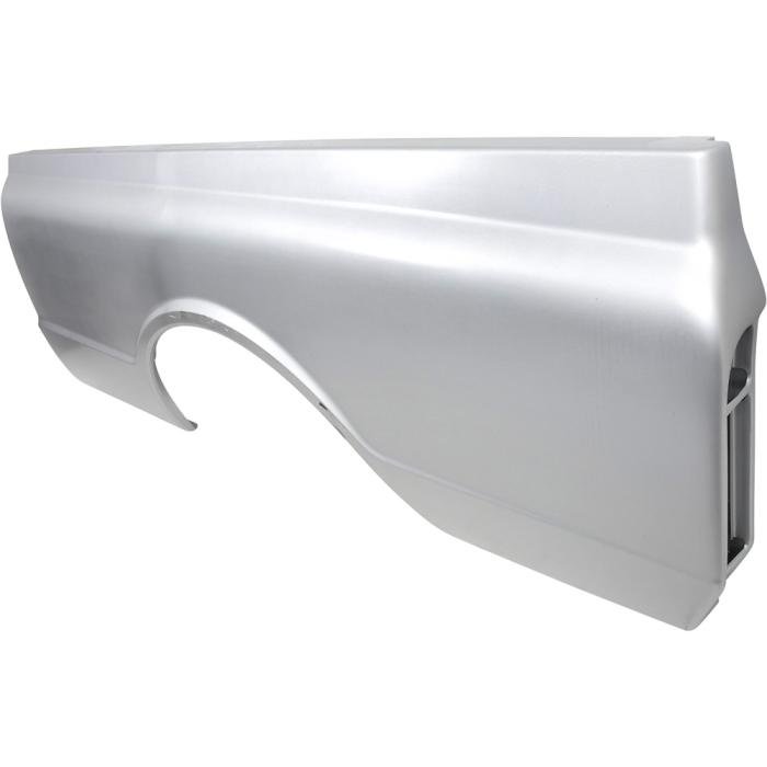 Custom bedside panel for 1967-72 Chevrolet and GMC Fleetside short bed truck models. This custom-style panel is designed without stake pockets or side marker holes which offers a smoother, custom appearance. Manufactured in stamped steel as original. Each panel features a silver primer coating for rust and corrosion prevention.