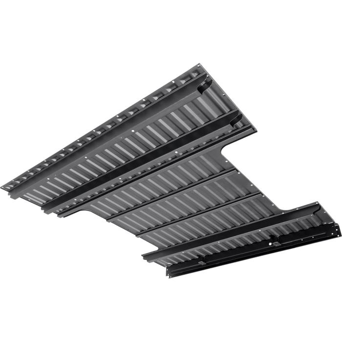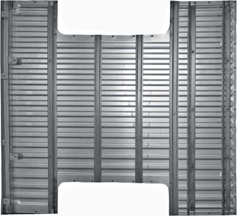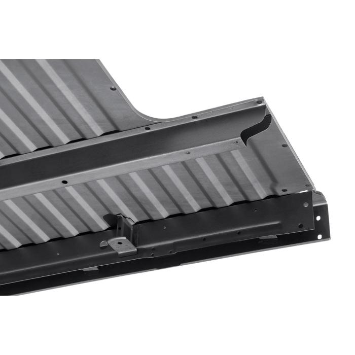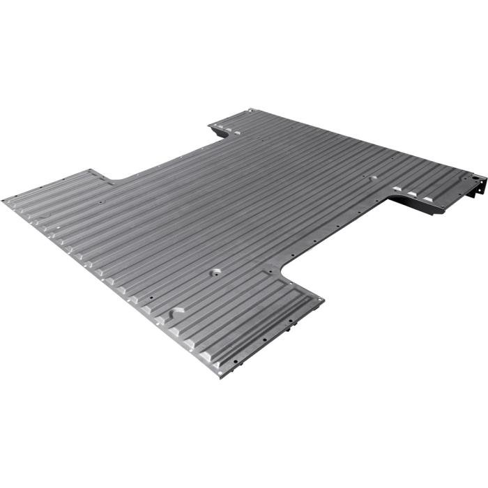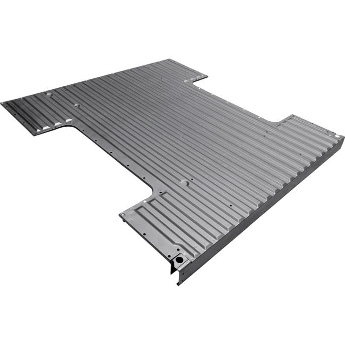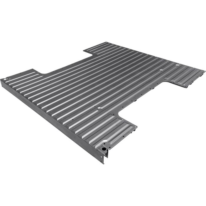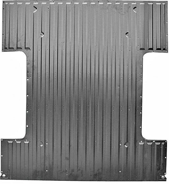 Reproduction of the full bed floor panel for 1967-72 Chevrolet and GMC Fleetside pickup and 1967-72 Fleetside Pickup, Crew Cab and Dually 6'5 short bed truck models with stock tubs. Each complete floor pan is manufactured in quality stamped steel to OE specifications replicating the original in quality and design. Comes with the lower bracing welded into place. Features silver primer for rust prevention. Not for use on stepside models.