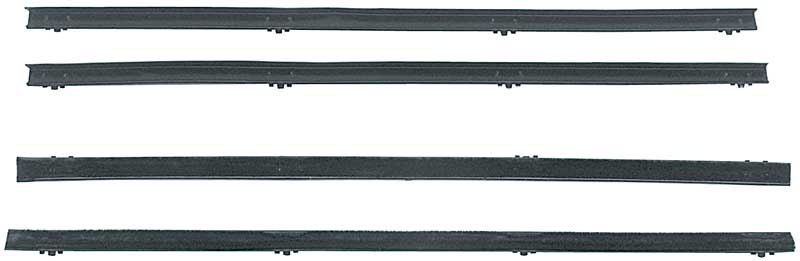 Reproduction belt line weatherstrip set for Suburban models. This set of anti-rattle felt strips for 1967-72 Suburban models will fit the passenger rear side door and LH rear side retractable window. Each kit is designed to replace the original felts to allow a tight seal that prevents water or other elements from entering the inside of the door or side body panel while preventing rattling of the side window glass. These sets include the horizontal glass felt wiper strips only, a 4-piece set of inner and outers for the LH and RH sides.