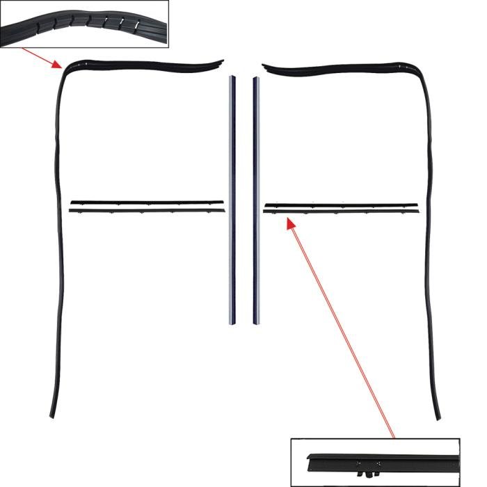 • 2 - Door Glass Run Upper and Rear Channels (driver and passenger door)