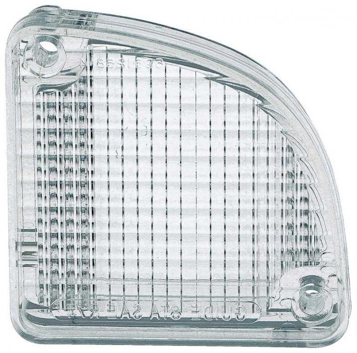 Reproduction of the original rear back-up lamp lens designed for use on 1967-72 Fleetside pickup trucks, 1969-72 Blazer, and 1970-72 GMC Jimmy models. Each lens is manufactured in injection molded clear acrylic ABS lens material matching the original in quality and appearance. Each lens includes the correct verbage including "SAE" and "Guide" markings.