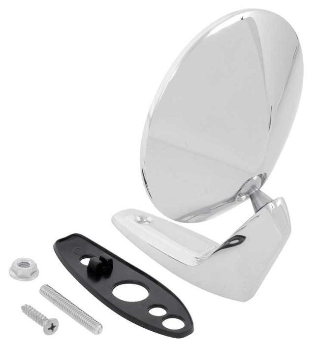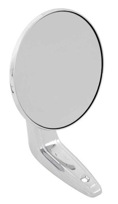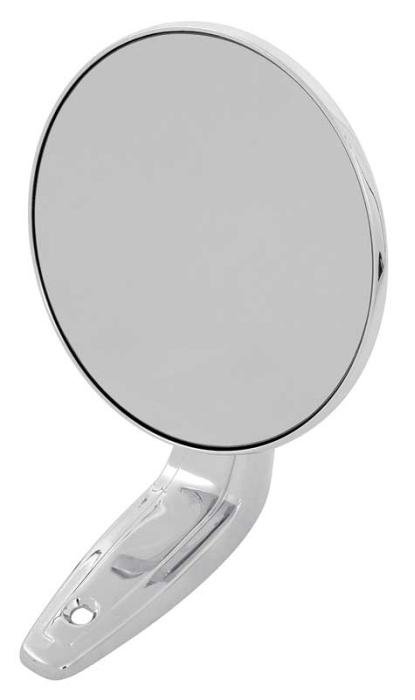 Reproduction of the original outer single post door mirror for 1967-74 Dodge and Plymouth A-Body or 1968-70 Dodge and Plymouth B-Body models. Each outer door mirror is manufactured in die-cast zinc featuring a bright chrome finish for an authentic appearance. Mirror will install on drivers side or passenger side of various Dodge and Plymouth applications. Includes gasket and mounting hardware. Sold individually. 2 mirrors required per vehicle.