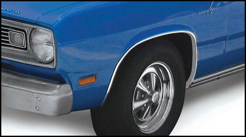 Reproduction of the original wheel opening moldings designed for use with various 1967-76 Plymouth Valiant (2 & 4 door), 1970-74 Duster (2 door), and 1974-76 Scamp (2 door) models. Each molding is manufactured in stamped aluminum to original factory contours replicating the original in fitment and appearance. Mounting screws included.