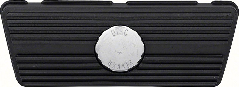 This correct OER® reproduction of the original brake pedal pad is designed for use on various GM models including 1968-70 Camaros equipped with both an automatic trans and disc brakes. The reproduction features the correct design ribbed rubber foot pad along with the chrome "DISC BRAKES" medallion in the center of the pedal pad. Includes the working "Disc Brakes"