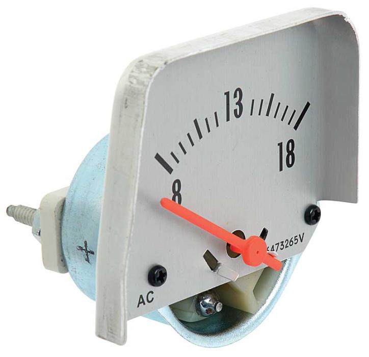 Reproduction of the original-style voltmeter designed for use on 1968-69 Camaro models with console gauges and other variuous GM models as listed. The original console gauge package included an ampmeter, not a voltmeter. This volt meter is designed to install in place of the original ammeter gauge. Each gauge features a brushed aluminum face and original style markings to match the surrounding guages.