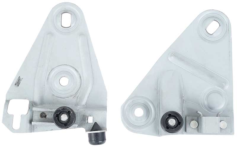 Reproduction of the original door window plate and roller assembly set for use on 1968-69 Camaro and Firebird models. This door window plate mounts at the bottom of the door glass in the front and rear sections of the glass. This is an exact reproduction of the OE window plate and will mount just like the original. Includes mounting plates front and rear, front rubber stop, and guide rollers. Includes front and rear plate for passenger side.