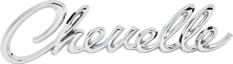 Reproduction of the original "Chevelle" front header panel emblem designed for use with all 1968-69 Chevrolet Chevelle models. Manufactured in zinc die-cast metal replicating the original in fitment and appearance. Features correct font design with a quality triple chrome plated finish. Includes mounting hardware.