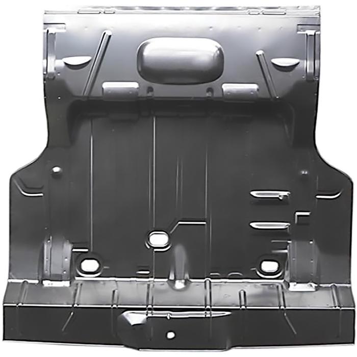 Full one piece trunk floor pan (includes gas tank braces, body braces, and brackets already welded in. This panel replaces the area from the back of the rear seat to the rear body panel. Modification may be needed at the back of the trunk at rear body panel.