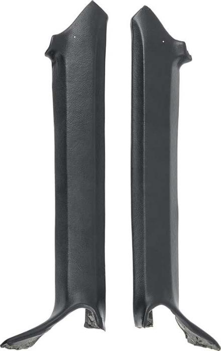 Each molding is manufactured identical to match the original featuring a thermal formed Madrid grain vinyl back filled with an OE style formed metal insert and filled with low density foam giving the look and feel of the original molding. Mounting screw holes are in the proper location for correct installation and a perfect fit. Available in black. Sold in pairs. Includs RH and LH pillar post moldings.