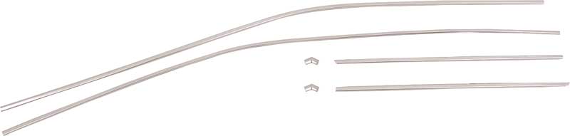 Reproduction roof drip rail moldings for 1968-70 Dodge and Plymouth B-Body models. Each molding is manufactured in quality stainless steel to original factory dimensions for an authentic appearance and fit. Moldings run up the front A-pillar, across the roof line, and down towards the rear. Six piece set provides roof drip moldings for both RH and LH sides.