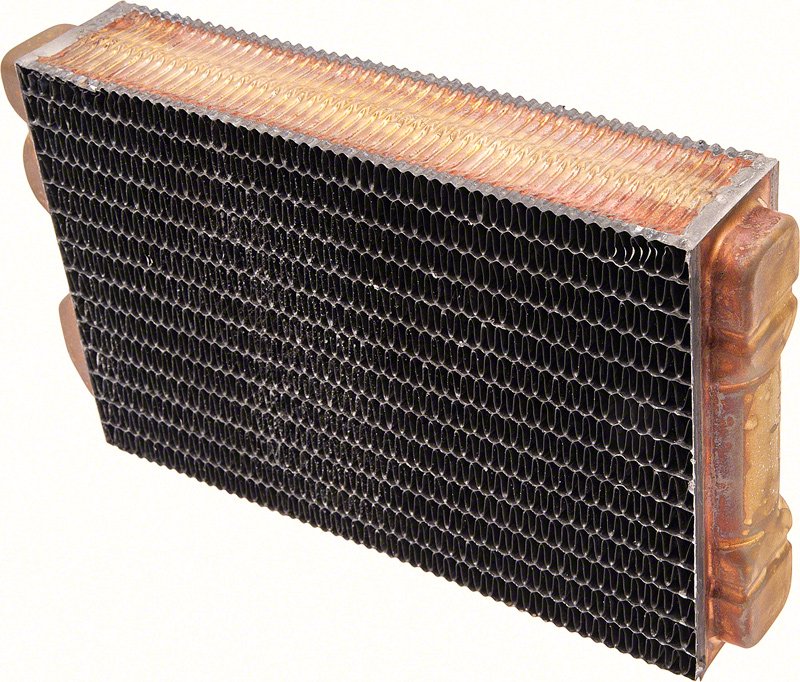 Original reproduction style heater core assembly for use with 1969 Camaro big block (396), and 1968-70 Chevy II, Nova models without air conditioning. Each heater core is manufactured to correct factory specifications and features a copper core and brass tank. Replaces original exactly and mounts inside heater box assembly.