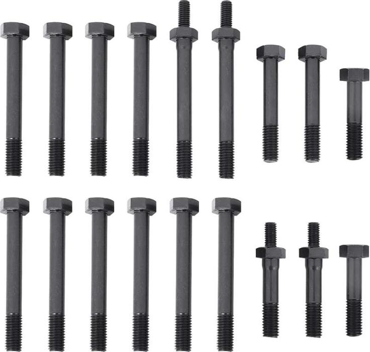 Original style Pontiac cylinder head bolts for 1968-74 Pontiac round port heads including Ram Air II heads casting # 96 , Ram Air IV # 722 and # 614, HO, 455 # 197 and 7F6, and 1973-74 Super Duty # 16 heads. Each 20 piece set includes 4 correct studs for accessory mounts.