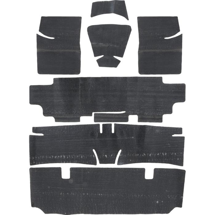 Reproduction of the original style carpet underlay designed for use with 1968-74 Chevrolet Nova, Ventura, Apollo, and Omega models. Manufactured and die-cut to fit the floor pan. For best results when installing new carpet, replace the underlay with this OEM quality replacement. The carpet underlay is used to eliminate noise and heat from the interior and helps protect floor pans from rust and acts as a barrier against outside heat, cold and noise. Includes a complete set of carpet underlay for replacement of originals.