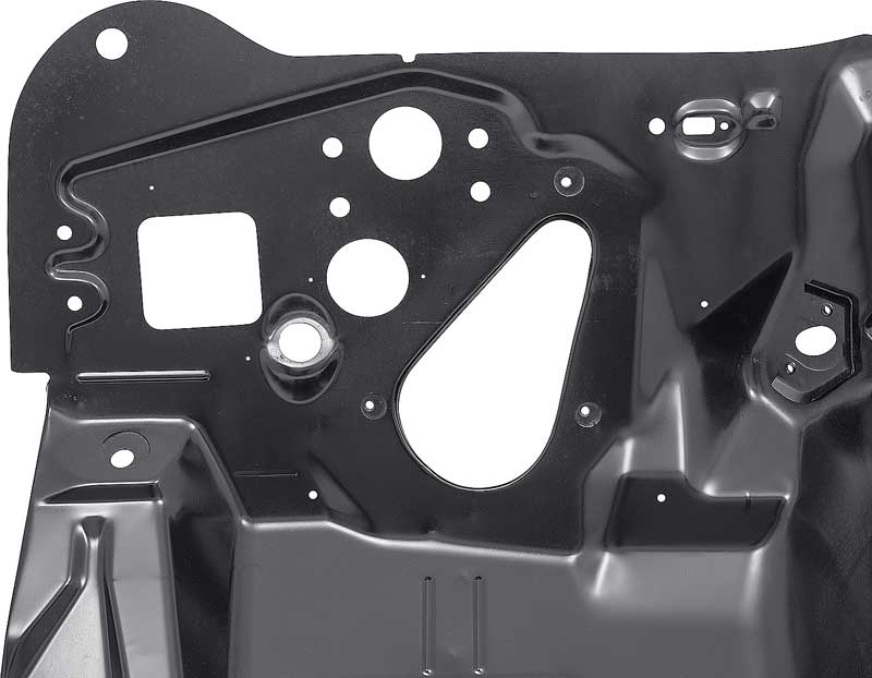 Unlike universal-style firewalls that are punched to fit multiple years, this firewall is punched specifically for 1968 only. This panel is correct for 1968 models equipped with A/C and includes the factory-style air box cutout.