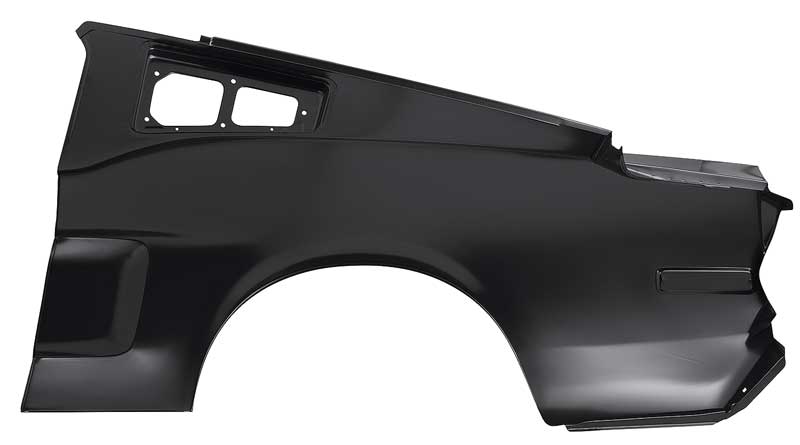 Reproduction of the original complete quarter panel designed for use with 1968 Mustang Fastback models (early 1968 models). Each quarter panel is manufactured in stamped steel to original factory specifications featuring correct contours for an authentic appearance and fit. Each Not just a skin, a complete reproduction of the original quarter panel that includes every component found on the original quarter panel. This is a one piece design unlike other reproductions where the sail panel area is not attached. Comes with a black EDP coating for rust and corrosion prevention. Note: For the early style quarter panel with surface mount side marker, see 27840QR.