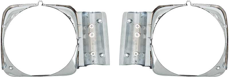 Reproduction headlamp bezels for 1969-72 Nova models. Each bezel is manufactured in die-cast zinc and chrome plated replicating the original factory bezels. Includes correctly painted black trim areas in the original locations for an authentic appearance. Bezels mounts to the vehicle using philliips head screws (available separately) to provide a finished appearance around the sealed beam headlamp. Refer to part number # 748595 for bezel hardware.