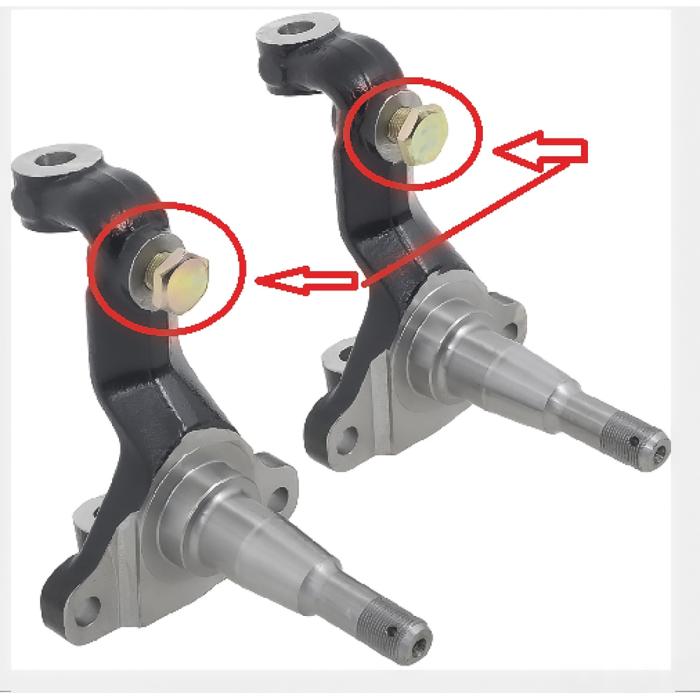 One pair of the special bolts required to secure the caliper bracket to the spindle. This bolt set fits a variety of 1967-74 GM models equipped with factory disc brakes, as a replacement for the original GM caliper bolt, OE # 1381744. It is also commonly found in use on 1962-66 models that have been converted to disc brakes. Most of the popular disc brake conversion kits, and disc brake spindles and drop spindles in the aftermarket include these bolts to mount the caliper brackets to the spindle. Bolts feature a gold electroplated finish for superior corrosion resistance. Sold as a pair.