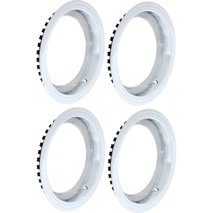 Triple chrome-plated stainless steel trim rings for models with Rally Wheels. These trim rings combine the durability of stainless steel with the deep luster of chrome for a custom look that will last. Sold in sets of four. Measures 2-1/2" deep.