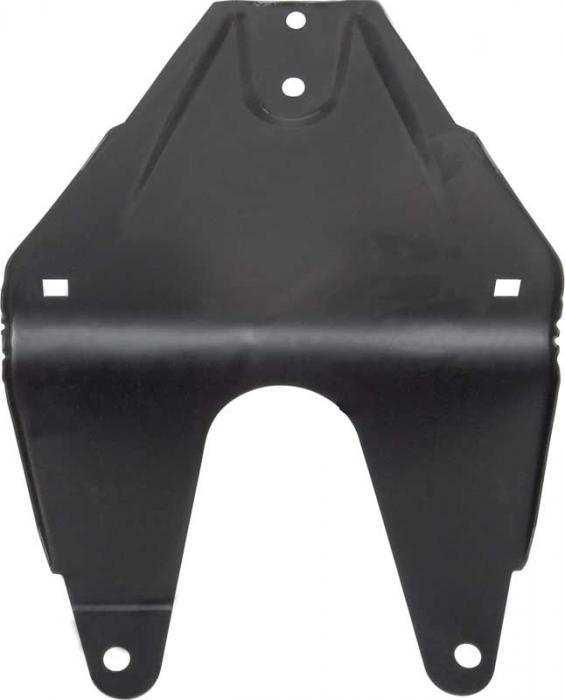 Reproduction of the original license plate bracket designed for use on 1969 Chevrolet Camaro models. This bracket is manufactured in stamped steel to exact factory specifications, ensuring a precise fit and factory-original appearance. It mounts directly to the front valance and provides a secure mounting point for the front license plate. A perfect choice for restorers seeking an authentic replacement component.