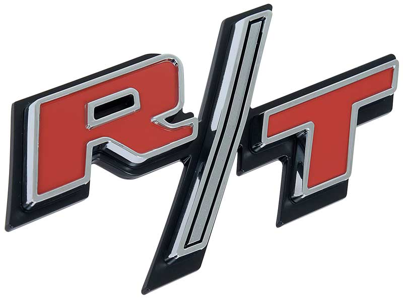 OER reproduction "R/T" quarter panel emblem for 1969 Charger R/T and Coronet R/T models. Manufactured to exacting factory specifications with the correct mounting studs and installation hardware included for your convenience. Each "R/T" emblem is precision die-cast as original, then chrome plated and polished to perfection with the correct satin black accent paint and glossy red painted letters as original. On the back of the emblem, the correct Pentastar logo and factory original markings make this emblem almost impossible to differentiate from the original Mopar item. Sold individually.