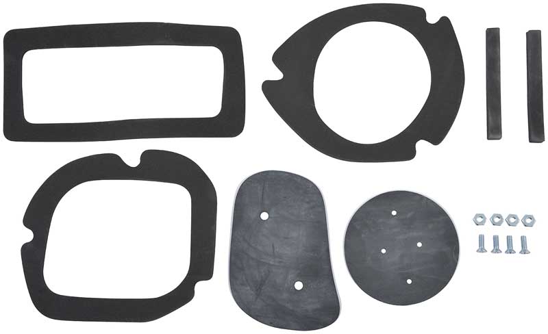 Reproduction of the original style gaskets needed to replace the air duct seals on the various models listed. Each set contains all die-cut solid and sponge rubber for resealing leaky Astro ventilation systems. Contains cowl to duct seals and accordion dust sponge seals. RH and LH included. Includes screws.