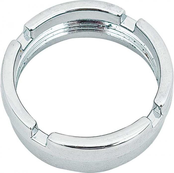 Reproduction of the original ignition switch bezel designed for use with 1969 Dodge and Plymouth A and B-body models. Each bezel is manufactured in die-cast zinc featuring correct threads for installation and a bright chrome finish as original.