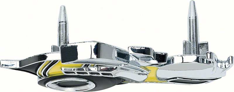 OER® reproduction of the original "Bumble Bee" grill emblem designed for use with 1969 Dodge Coronet Super Bee models. Each emblem is manufactured in quality die-cast zinc replicating the original emblem in every detail. The emblem features 3 fins on the locating studs that align it with the vertical rows on the 1969 grill for a flawless mount. These large pins secure the emblem it to the grill. The flat back design of this emblem also makes it a good choice for custom applications. Emblem includes all original Chrysler markings, part numbers and pentastar insignias on the back of the emblem offering complete originality and authenticity. Mounting hardware included.