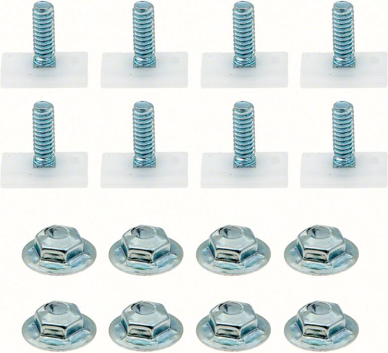 Factory-style replacement hood lip molding installation hardware for1967-69 Dart, and 1970-71 Dodge Challenger models. Each molding hardware includes proper retainers with 1/2 threaded stud and nuts to correctly secure your hood lip molding. Includes an 8 piece set. NOTE: Use for moldings MN1424, ME1556 and K3278 (not for use on # MN1426)