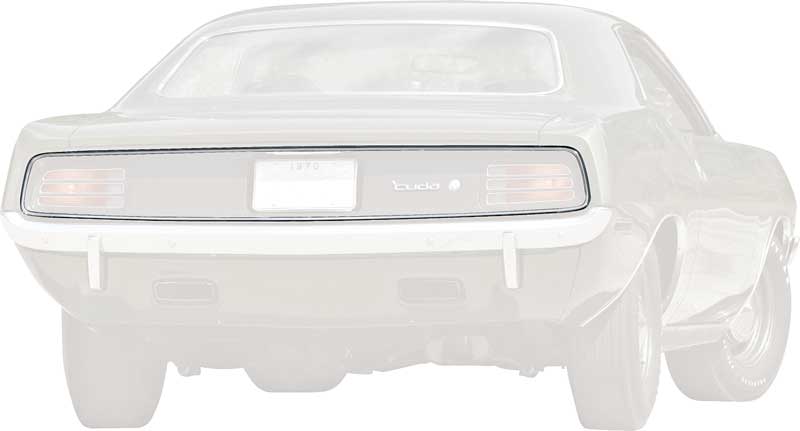 Reproduction of the original rear tail panel 4-piece molding set for 1970-71 Barracuda and 'Cuda models (except Gran Coupe). Each molding is manufactured in stamped aluminum to original factory specifications. Includes the upper and lower panel moldings, and RH and LH corner moldings. These unique moldings will restore the bright trim, accentuating your rear tail panel. Mounting hardware is sold separately.
