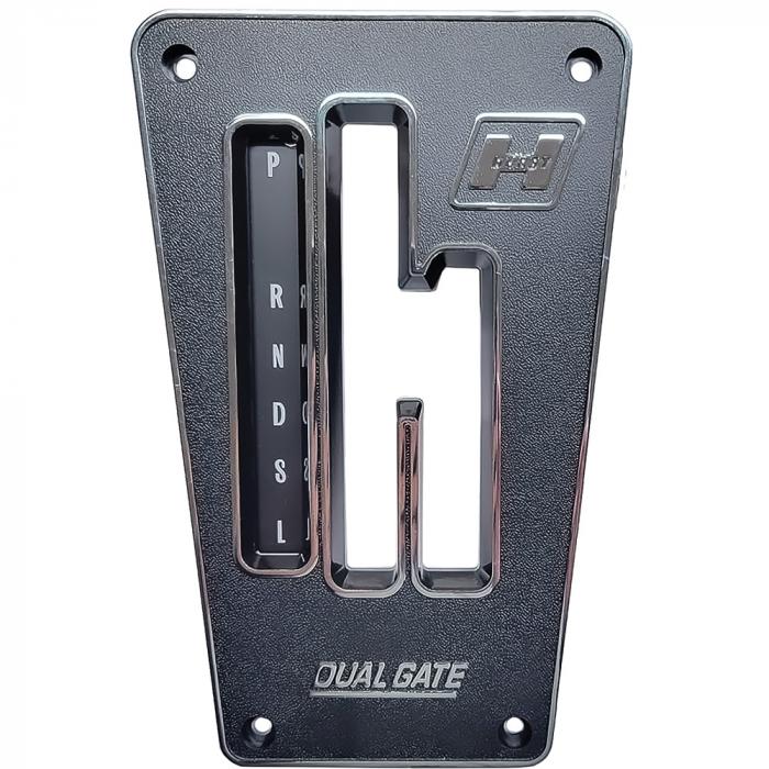 Correct reproduction of the automatic transmission console trim plate with Dualgate Hurst shifter for 1970-81 Pontiac Firebird and 1973-81 Chevrolet Camaro models. Made from durable injection-molded plastic, with the correct Hurst "H" postioned in the upper right corner as the original did from the factory. Sold individually.