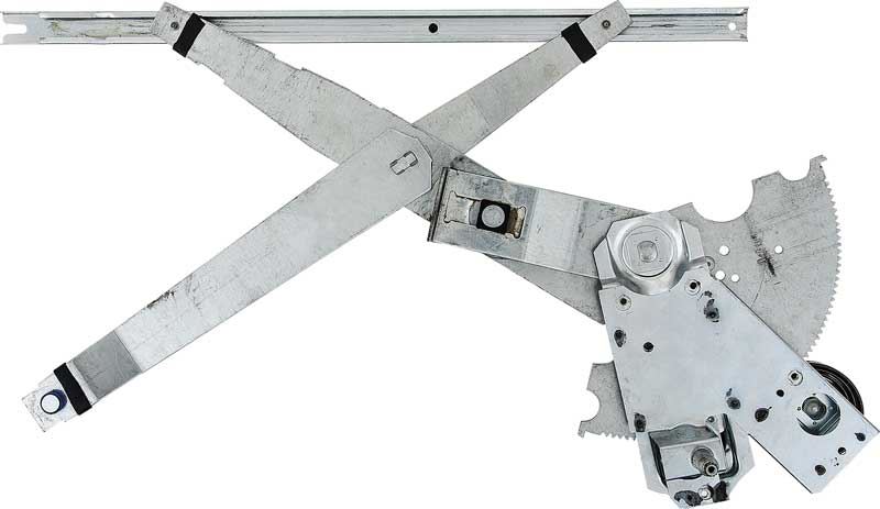 Reproduction of the original front door window regulator designed for use on 1970 Dodge Challenger models. All stamped steel construction, features correct splined shaft and correct retaining screw threads for use with OEM or reproduction crank handles. Regulators also include rubber insulators on the scissor arms as original. These are coated in clear zinc plating to ensure long lasting corrosion resistance. The roller is pre-attached during assembly.