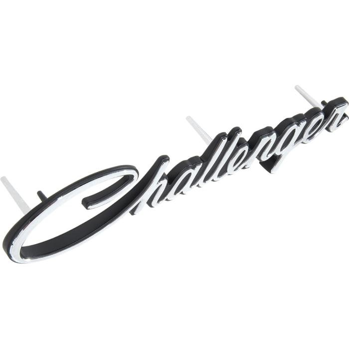 OER reproduction of the original Challenger grill emblem for 1970 Dodge Challenger models. This die-cast emblem is designed to fit exactly as original. Features correct color painted areas and font style. Comes complete with thread cutting PAL nuts for installation.