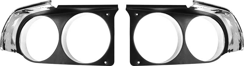 Attention to detail is important in any restoration, and cutting corners by reusing old headlight bezels can ruin the look of an otherwise nice restoration. Manufactured in stamped aluminum with a black center fill to OE specifications, these replacement headlamp bezels will fit, function, and appear like original equipment. Replace your damaged or missing originals with these high quality factory-style replacements. Sold in pairs.