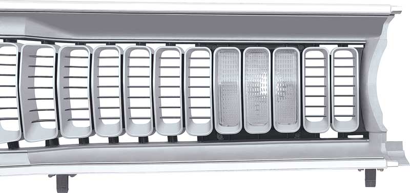 OER reproduction front grill assembly for 1971-72 Plymouth Duster 340 and Twister 340 models, produced using a high-pressure injection molding process, and designed to exact original specifications. Each grill is masked and painted in argent silver, then accent painted in the correct trim black sheen for complete authenticity. Can also be installed on 1970 models to convert to the sharktooth look. Each grill is pre-assembled in our factory for ease of installation. Comes ready for you to bolt right in!