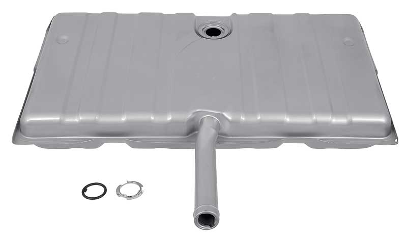 Reproduction of the original fuel tank designed for use with 1971-72 Nova, and Ventura models without Evaporative Emission Control (EEC). Each fuel tank is manufactured in quality stamped steel and features a zinc coating for rust and corrosion prevention. Measures 38" x 19-3/8" x 7-3/8". Features an 18 gallon capacity and includes the filler neck, fuel sender lock-ring, and o-ring gasket for a complete installation.