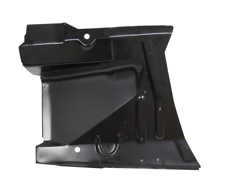 Reproduction of the driver side fender apron for all 1971-73 Mustang and Cougar models. Manufactured from heavy gauge stamped steel, this fits on the driver side of the engine compartment. It attaches the radiator support to the front of the shock tower.