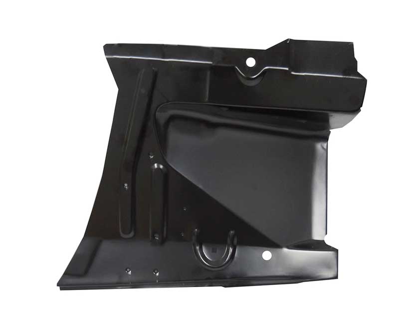 Reproduction of the driver side fender apron for all 1971-73 Mustang and Cougar models. Manufactured from heavy gauge stamped steel, this battery apron attaches the front of the shock tower cover to the radiator support. It is spot welded into place. Includeds correct holes for mounting.