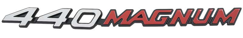 Reproduction of the original 440 Magnum hood emblem designed for use on various 1971-74 Dodge models. Each emblem is manufactured in die-cast zinc to OE specifications. Features correct factory paint scheme and factory markings for complete authenticity. Will replace the original emblem exactly which was installed on each side of the hood of 1971-74 Charger models. Sold individually. 2 required. Measures approximately 10.5" in length. Includes mounting hardware.