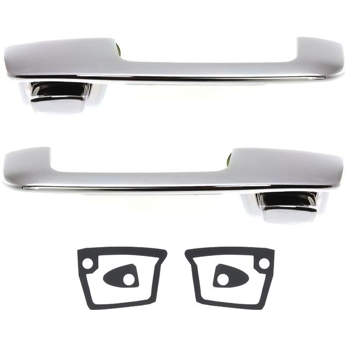 Reproduction outer door handles for various 1971-76 Dodge and Plymouth A-Body models and 1972-93 Dodge D/W Series trucks. Each door handle is manufactured in quality die-cast zinc featuring a polished chrome finish replicating the original in design, appearance, and fitment. Each set comes completely assembled and are ready to install. Features chrome handle with a chrome thumb-operated button.