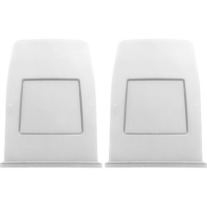 Reproduction seat back panels for 1973-76 Camaro (all), 1977-78 Camaro (Custom Seat or A51 seats), 1973-78 Firebird (with standard bucket seats), 1973-79 Nova, 1976-77 Olds Cutlass Supreme, and GM X body models. Each seat back panel is manufactured in correct injection molded ABS replicating the original in design, appearance, quality. Produced with detailed correct grain for an original appearance. Will fit and function correctly on 1971-72 Camaro, Firebird and Vega, Astre, but the square indentation is cosmetically correct for 1973-78 models. The 1971-72 factory seat back panels did not have a square indentation. Each set includes RH and LH panels. Sold in pairs. Painted in white.