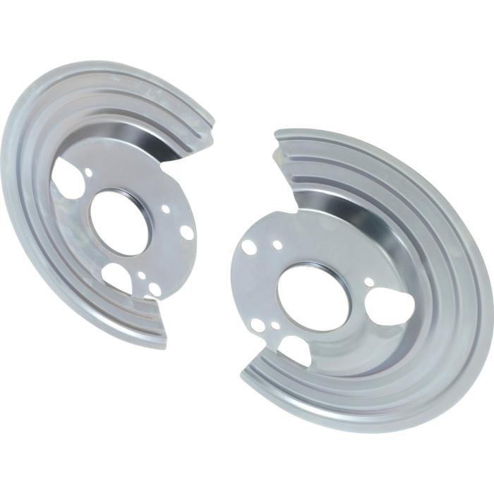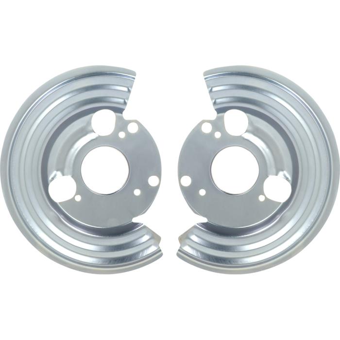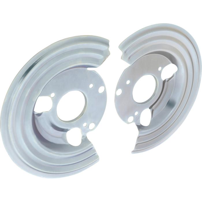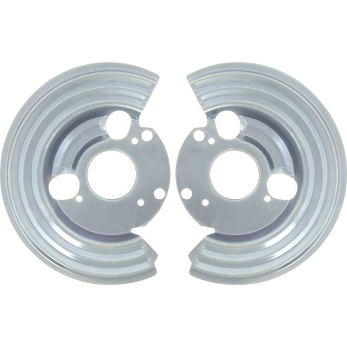 Reproduction of the original disc brake backing plates originally installed by the Chrysler factory on various 1973-74 Dodge and Plymouth B and E body models. They are sometimes referred to as dust shields or splash shields. This backing plate is also a popular upgrade or retrofit used when converting 1962-74 Dodge and Plymouth A, B, and E body models with most OE-style disc brake conversion kits that are on the market. Each backing plate is manufactured in precision-stamped steel to factory specifications. Features correct configuration and design for the various models listed. Sold in pairs.